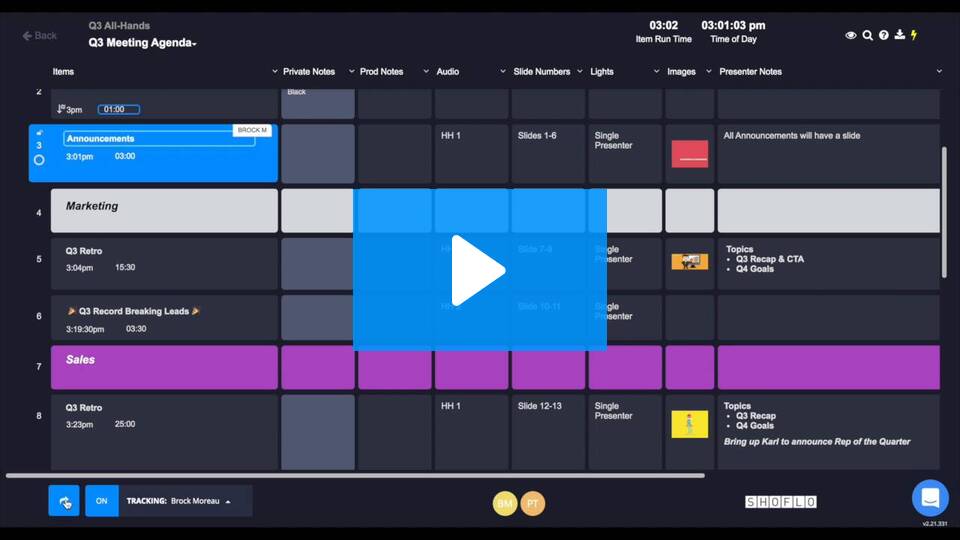 Wie managst du den Ablauf deines Events? Mit einem Ablaufplan bzw. Regieplan? Gute Sache! Aber erstellst dun pflegst du den in Excel? Mit unzähligen Versionen? Du weißt schon... "Plan_final", "Plan_final2", "Plan_endgueltig_final", "Plan_final_final". Oder nutzt du ein Tool, das live und in Echtzeit für alle Beteiligten aktuell ist? Noch nicht? Dann schau dir mal Shoflo.tv an. Dieses cloudbasierte Tool wurde speziell für die Regieplanung und Live-Show-Produktion entwickelt. Was shoflo.tv kann, erfährst du in diesem Beitrag.